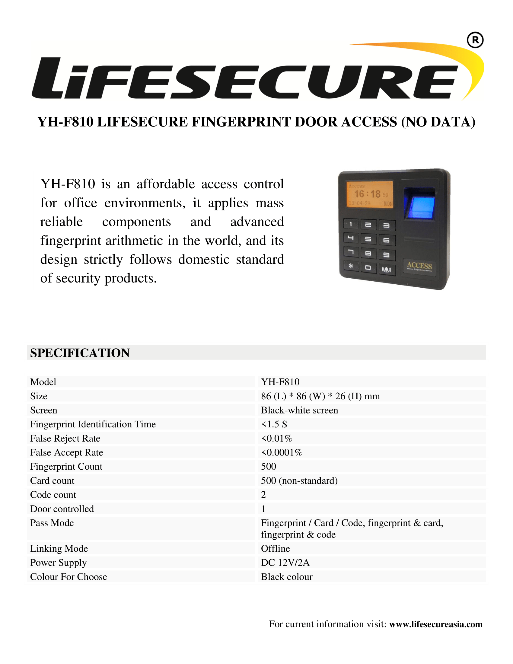 LIFESECURE DA-118 Network Fingerprint Door Access (No Data)